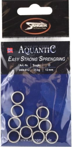 Sehr starker, dickdrähtiger und gehärteter, rostfreier Sprengring für Salz- und Süßwasser. Durch die hochstehenden Enden lässt sich der Haken oder Köder sehr leicht einfädeln. Zwei Größen mit 10mm und 12mm, sowie Tragkräfte mit 20kg bzw. 25kg.