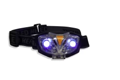 Diese Kopflampe verfügt über 2 Stück UV, roten und weißen LED. Die Lampe ist zudem auch um 90° neigbar. Die Lampe wird betrieben mit 3x AAA Batterien. Diese sind nicht im Lieferumfang enthalten. Die Lampe verfügt über drei Schaltstufen. Somit ist diese Lampe ein Must Have für jeden Brandungsangler und jeden der nicht nur Licht benötigt, sondern durch die integrierten UV LED’s auch seine Köder (selbstleuchtend) aufladen möchte.