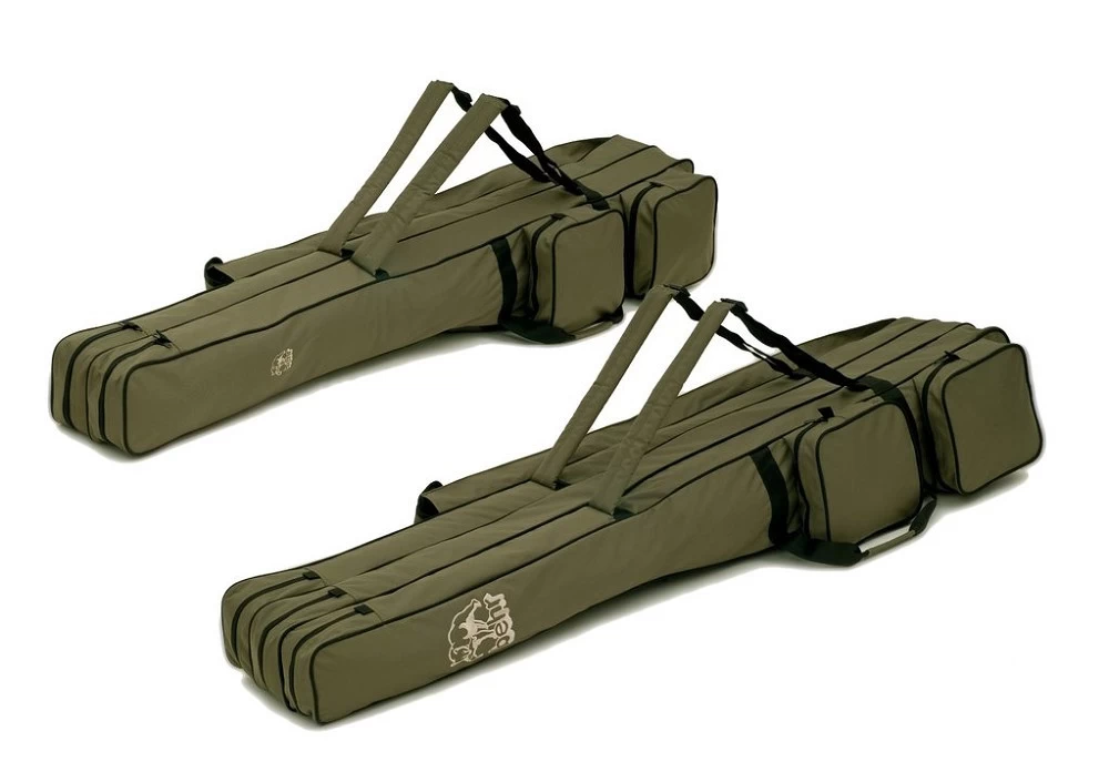 Diese Behr Rutentaschen sind Top-Modelle im neuen Design. Es gibt verschiedene Längen und zwei Ausführungen mit zwei bzw. drei Innenfächern für 4 bis 6 montierte Ruten. Zusätzlich haben diese auch noch zwei große aufgesetzte Außentaschen rechts und zwei Kleinere links. Eine weitere lange Außentasche ist ebenfalls noch angebracht und bietet so Platz für Erdspieße, Kescher etc. Ein robuster und gut gepolsterter Rückentragegurt, sowie zusätzliche Handtragegurte runden das Profil dieser super Rutenfutterale ab. Die Rutentaschen bestehen aus 100% Polyester mit einer 100% Polychlorid Beschichtung.