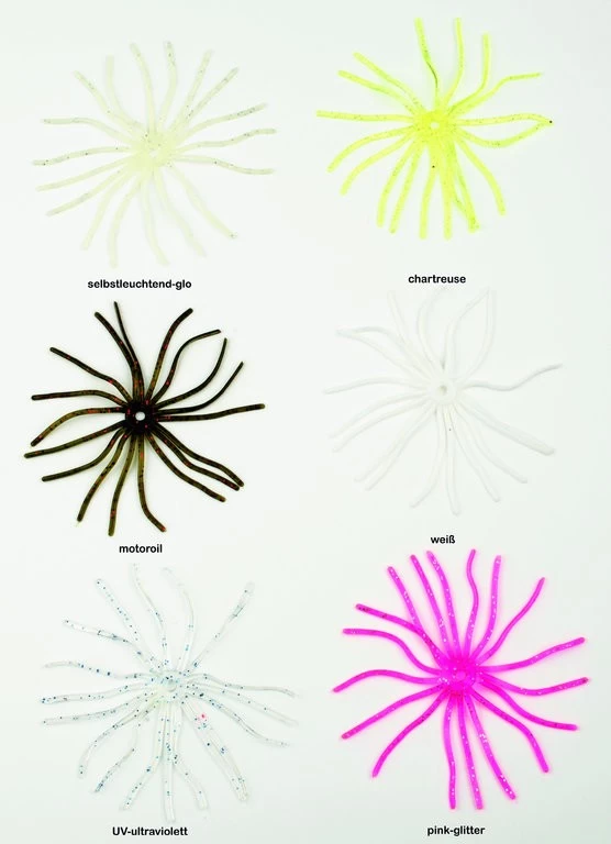 Diese super-soften und lose verpackten Tentakeln sind ideal zum Bau eigener Meeres-Systeme oder zum tunen von Pilkern. Diese Curly Skirts haben eine GesamtlÀnge von ca. 12cm. Es gibt sie in 6 verschiedenen Farben.
