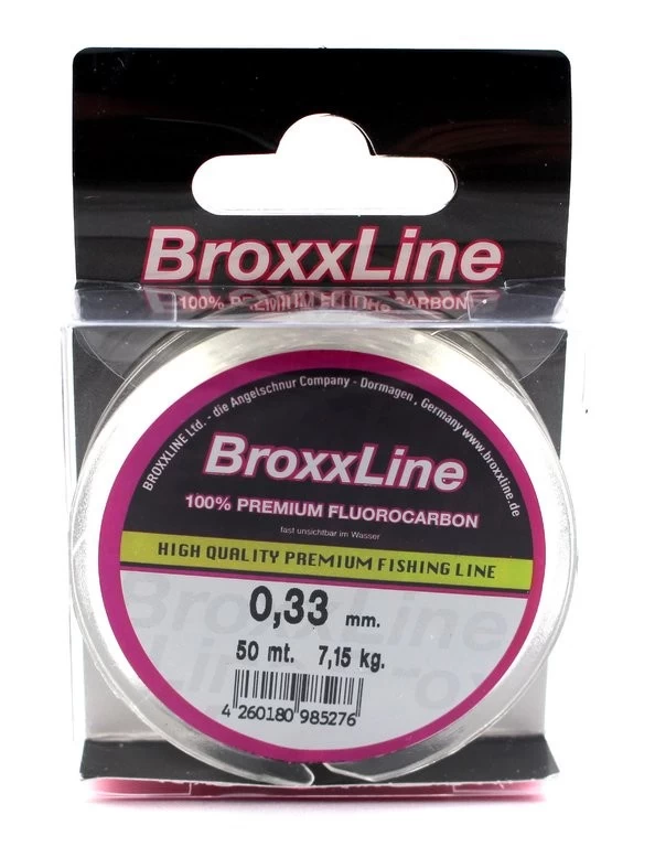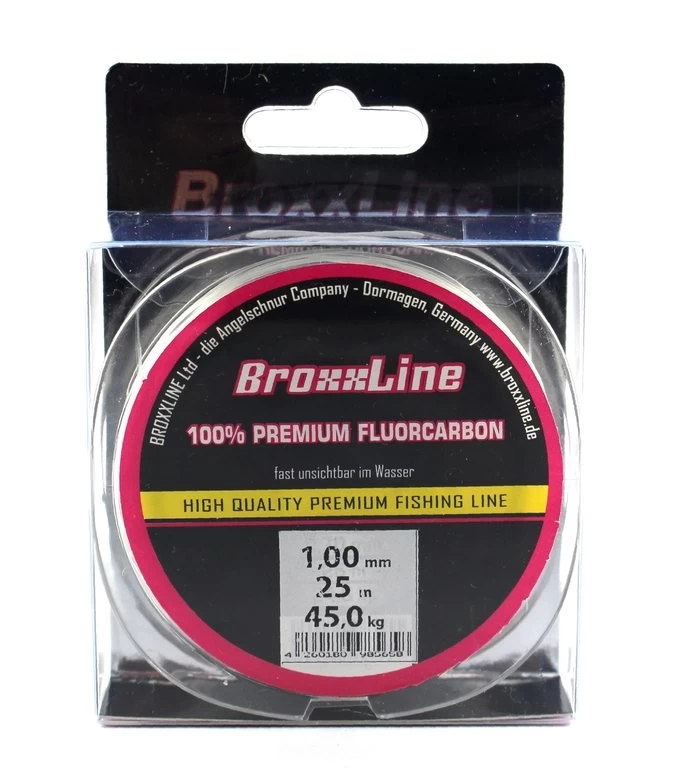 Diese Vorfachschnur ist Made in Japan. Broxxline Fluorocarbon Angelschnur besteht aus 100 % Fluorocarbon. Die Schnur hat eine sehr hohe Festigkeit, Knotenfestigkeit und AbriebbestÀndigkeit sowie eine lange Lebenserwartung. Sie ist von Haus aus bestÀndig gegen UV-Strahlen.?