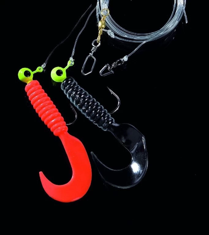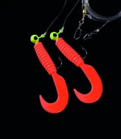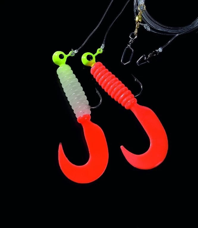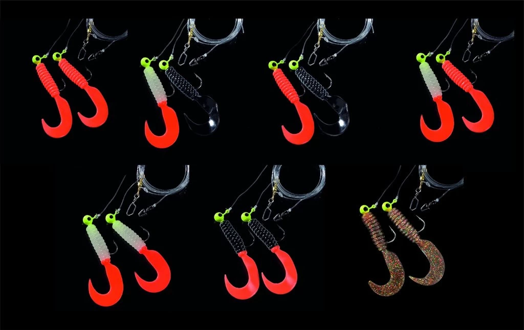 Dieses Doppeltwister-Rig gibt es in sieben Farbkombinationen. Die Twister sind an 3,5g schweren Jigköpfen der HakengröĂe 2/0 montiert. Das Vorfach ist 130cm lang und an einer Hauptschnur mit 0,60mm starker monofilen Schnur befestigt. Die Seitenarme bestehen aus 0,50mm starker monofilen Schnur.