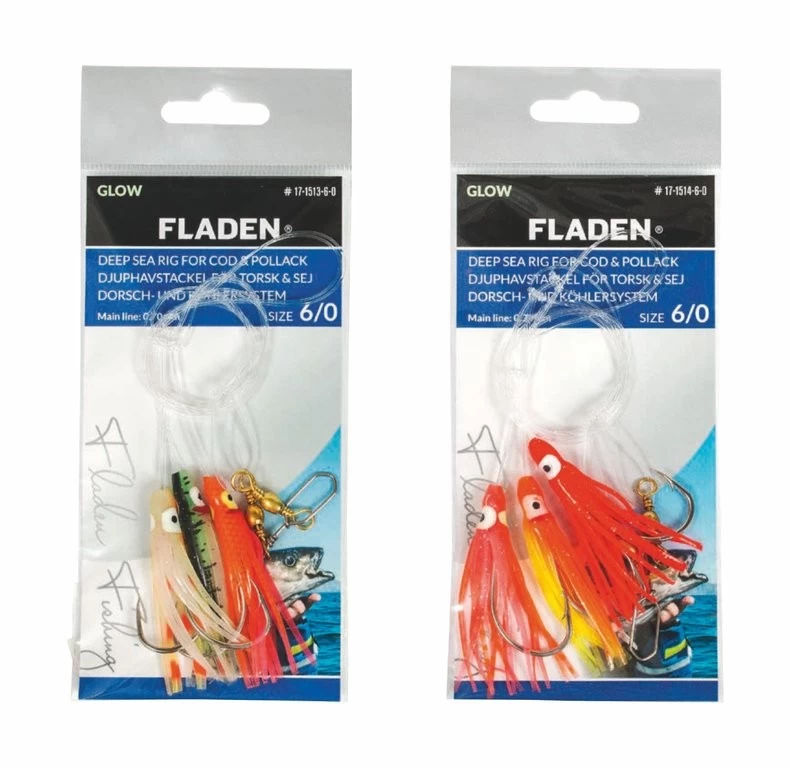 Dieses Dorsch- und Köhlervorfach gibt es in zwei Farb-Varianten und Hakengrößen. Zum einen stehen die Farbkombinationen Orange-Gelb-Glow oder Orange-Pink-Rot zur Auswahl und zum anderen sind diese in den Hakengrößen 2/0 und 6/0 erhältlich. Die Schnurstärke beträgt bei der Hakengröße 2/0 0,60mm und bei der Größe 6/0 0,70mm. An jedem Vorfach befinden sich 3 Mini-Oktopusse.