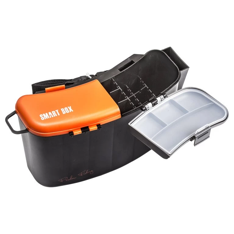 Diese Köderbox wir um den Bauch geschnallt und bietet dort direkten Zugriff auf Köder und Zubehör. Sie besitzt einen einstellbaren Hüftgurt, zwei separat zu öffnende Deckel und Drainagelöcher, damit das Wasser, welches noch am Köder ist abtropfen kann und es somit keine Staunnässe geben kann. Die Box besteht aus leichten, aber denoch haltbaren Kunststoff. Im Inneren der Box gibt es ein größeres Fach sowie 18 rechteckige Einteilungen, an denen die Köder wie kleinere Pilker, Wobbler oder Blinker eingehängt werden. Außen verfügt die Box noch über einen Zangelhalter und eine Lasche, an der z.B. ein Wristband oder Magnethalter befestigt werden kann. Die Box ist praktisch und vielseitig einsetzbar und bestens für den Spinn- und Küstenangler geeignet.