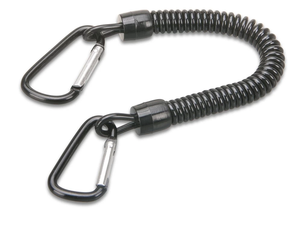 Mit den zwei Karabinern können Sie Zubehör, Schlüssel oder Watkescher befestigen. Das Band lässt sich von 25cm bis ca. 65cm dehnen.
