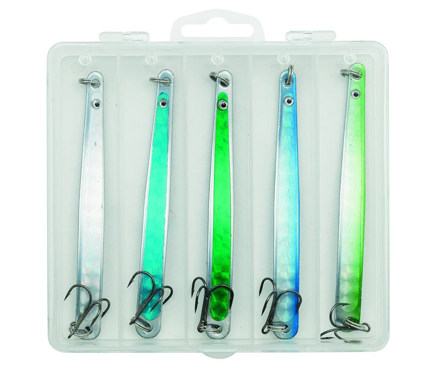 Klassischer und bewährter pelagischer Köder, der einen der Lieblingsfische imitiert: den Sandaal. Diese fünf Blinker bieten Ihnen eine gute Grundlage für beliebte Arten wie Hornhecht, Meerforelle, Köhler, Makrele und Wolfsbarsch. Es stehen Ihnen drei verschiedene Grammaturen zur Verfügung. Diese reichen von 16g über 20g bis zu 24g. In jeder praktischen Box, die inklusive ist, sind fünf Blinker enthalten.