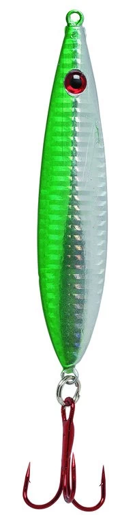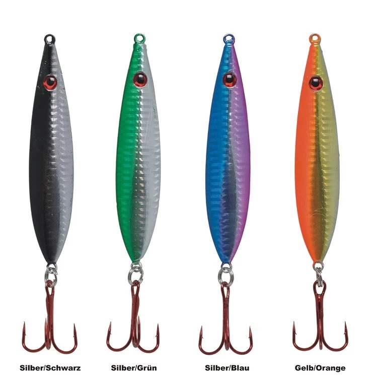 Dieser Pilker von Kinetic ist bleifrei. Er hat einen holographischen Körper mit High Gloss Finsih. Ausgestattet ist dieser Pilker mit einem roten QualitÀts-Drilling. Sie haben die Wahl zwischen vier schönen und fÀngigen Farben und vier Gewichten von 75g bis 200g.