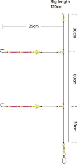 Dieses leichte Boot und Brandungs-Vorfach ist perfekt fĂŒr kleinmĂ€ulige Plattfische oder wĂ€hlerische Dorsche. Bunte Attraktoren mit schwimmenden SpinnerblĂ€ttern können Ihre Köder unter verschiedensten Bedingungen prĂ€sentieren. Ein Muss!