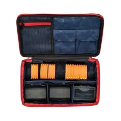 Die PENN Rig Station besteht aus einem Hartschalenmaterial mit 600D-Polyester und PVC-Beschichtung, wodurch sie sehr leicht zu reinigen ist. Außerdem ist sie mit 3 kleinen Tackleboxen ausgestattet, um sicherzustellen, dass Sie alles benötigte End-Tackle mitnehmen können. Außerdem verfügt sie über 6 große EVA-Rig-Winder, die bis zu 18 Rigs aufnehmen können, und es gibt mehrere Netztaschen im Inneren, in denen andere Kleinigkeiten verstaut werden können.