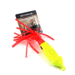 Diese Tintenfisch-Imitation ist ideal zum Jiggen, aber auch zum Schleppen, geeignet. Der Jig verfĂŒgt ĂŒber ultra UV-aktive Lackierung und Tentakeln. Es gibt diesen Jig in den Farben Gelb/Schwarz und Orange/Schwarz. Der Squid-Jigger verfĂŒgt ĂŒber eine starken Salzwasser-Drilling. Es können zusĂ€tzlich noch Fischfetzen am Drilling montiert werden, was die FĂ€ngigkeit noch erhöht.