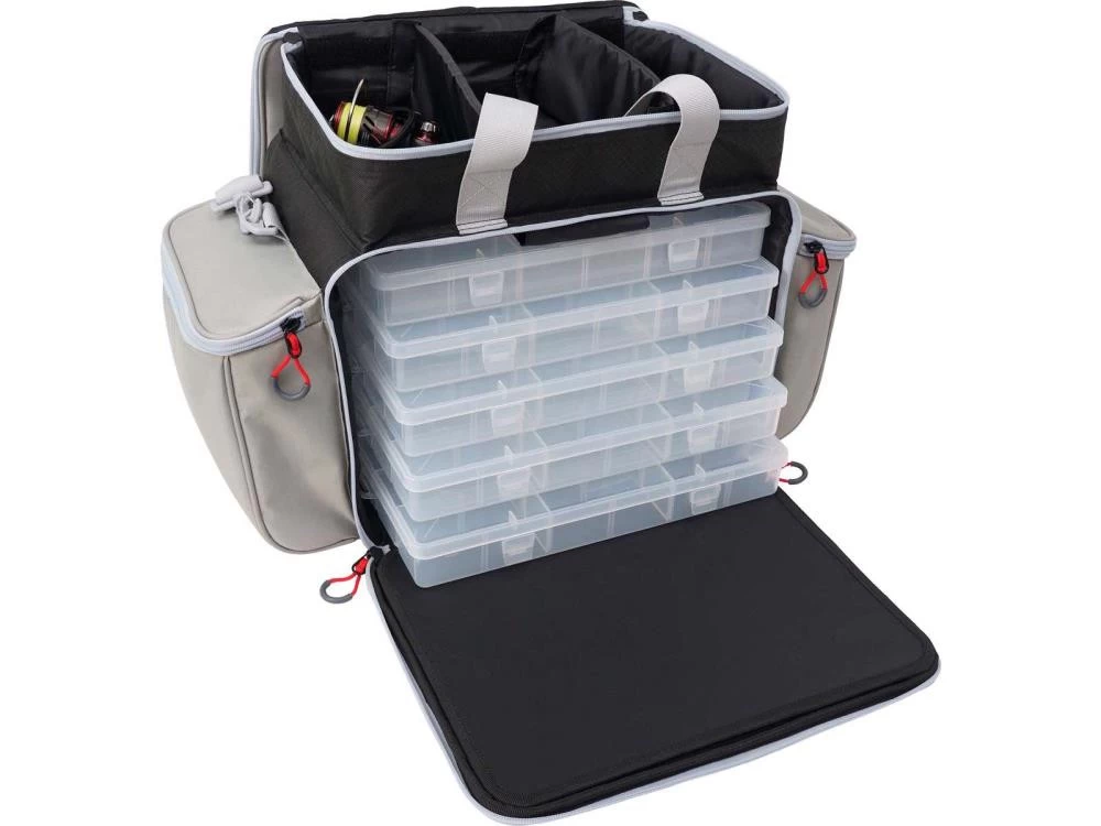 Die W3 Vertical Master Bag ist die perfekte Lösung, um alles in schöner Ordnung zu halten. Das Hauptfach enthält Köderboxen und an der Vorderseite findest Du eine Werkzeug-Organisationsplatte, um Deine Tools aufzubewahren. Das obere Fach hat zwei abnehmbare und verstellbare Trennwände. Die W3 Vertical Master Bag hat große Netztaschen, große Seitentaschen für Zubehör, Tragegriffe und einen abnehmbaren, gepolsterten Schultergurt.