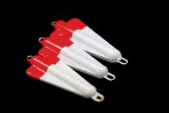 Diese Heringsbleie gibt es in unterschiedlichen GröĂen von 20g bis 60g. Sie sind rot-weiĂ lackiert und bleifrei. Sind sind somit umweltfreundlicher. Sie haben zwei Ăsen und können somit je nach Zweck als langsam sinkend oder schnell sinkend montiert werden.